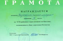Команда ГБОУ "Актанышская кадетская школа-интернат имени Героя Советского Союза Хасана Заманова" под руководством заместителя директора по ВР Мингазова Р.Л. в составе 10 кадетов заняла общекомандное IV место и награждена благодарственным письмом.