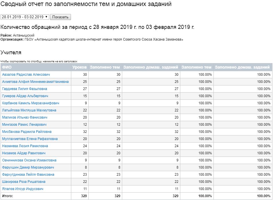 Сводный отчет по заполняемости тем и домашних заданий (28.01.2019-03.02.2019) 04.02.2019