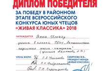 13 марта на базе МБОУ "Актанышская СОШ №2 с углублённым изучением отдельных предметов" состоялся районный этап Всероссийского конкурса юных чтецов "Живая классика 2018", в котором ученик 8б класса нашей школы Яхин Ильназ(учитель Ахметова А.М.) стал победителем и награждён Дипломом победителя. Поздравляем и желаем удачи на республиканском этапе конкурса!