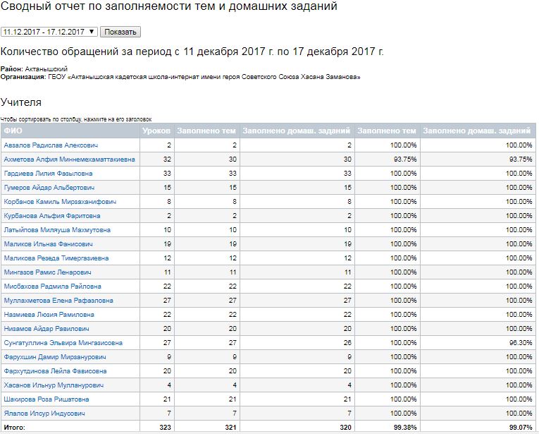 Сводный отчет по заполняемости тем и домашних заданий (18.12.2017-23.12.2017 18.12.2017
