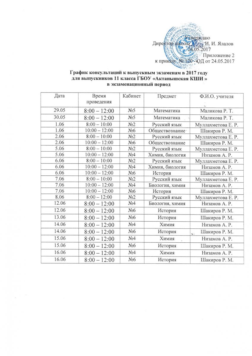 Консультации по подготовке к экзаменам для выпускников 9-х и 11-х классов 29.05.2017