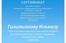 Стали известны итоги республиканского конкурса среди школьников 10-11 классов на тему "Молодёжь без табака". Из нашей школы приняли участие в конкурсе и получили сертификаты следующие кадеты: Есаревский Я., Гилимьянов И., Курмашева М., Гарифуллина М., Халиуллин М. и Петров К.