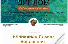 Ученик 10 класса нашей школы Гилимьянов Ильназ награждён Дипломом победителя I Всероссийской олимпиады по обществознанию для 5-11 классов. Учитель обществознания Шакиров Р.М. награждён благодарственным письмом за подготовку победителя I Всероссийской олимпиады по обществознанию для 5-11 классов. Поздравляем!