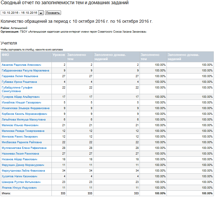 Сводный отчет по заполняемости тем и домашних заданий (10.10.2016-15.10.2016) 17.10.2016