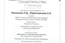 Опубликована творческая работа учениц 7 класса нашей школы Фазлыевой Эльвиры и Фархутдиновой Айназ(руководитель Фархутдинова Л.Ф.) в социальной сети работников образования "nsportal.ru ". Web-адрес публикации:nsportal.ru/node/2139865. Поздравляем и желаем дальнейших успехов!