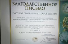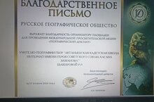 Русское географическое общество выражает благодарность организатору площадки для проведения международной просветительской акции "Географический диктант" директору ГБОУ "Актанышская КШИ" Ялалову И.И. и всему организационному коллективу.