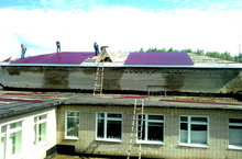 В школе идут ремонтные работы. Силами учителей и воспитателей завешается строительства крыши спортзала.