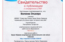 Опубликована творческая работа ученицы 8А класса Валиевой Эльвиры в социальной сети работников образования "nsportal.ru ".Web-адрес публикации:nsportal.ru/node/1536167 . Поздравляем и желаем дальнейших успехов!