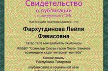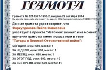 Учительница татарского языка и литературы Фархутдинова Л.Ф. награждена грамотой Всероссийского проекта "Источник знаний". Поздравляем и желаем дальнейших побед!