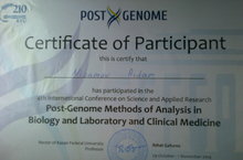 С 29 октября по 1 ноября учитель биологии Низамов А.Р. участвовал в 4-й международной конференции «Методы Пост генома Научного и Прикладного исследования анализа в биологии и лабораторной и клинической медицине» и награждён свидетельством участника.