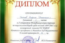 1 ноября в г.Мамадыш прошел X открытый Республиканский турнир по национальной борьбе среди юношей 1999-2001 г.р., посвященный памяти МС РСФСР Почетного гражданина г.Мамадыш Р.Я.Мухаметшина. Ученик 8А класса нашей школы, Галиев Рафиль в весовой категории до 46 кг. занял II место, награжден дипломом и медалью. Поздравляем и желаем дальнейших успехов!