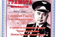 Грамотой награждается Хасбиев Ленар, занявший I место в весовой категории 40 кг в турнире по нац.борьбе "Курэш", посвященный Дважды Героя Советского Союза Мусе Гайсинову Гарееву. Молодец! Поздравляем!