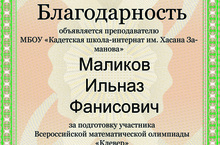 Учителя математики: Назмиева Л.Р. и Маликов И.Ф. - благодарность.