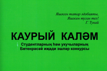 25 апреля прошел заключительный этап всероссийского конкурса студентов и учащихся "КАУРЫЙ КАЛӘМ", который проводился Министерством по делам молодежи, спорту и туризму РТ при участии Министества образования и науки РТ и факультета филологии и истории филиала КФУ в г. Елабуга. Одна из основных целей - выявления лучших представителей талантливой молодежи и популяризации татарского языка и татарской литературы.