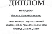 С 13 по 26 ноября в школе прошла Общероссийская предметная олимпиада "Олимпус Осенняя Сессия 2013". Награждены дипломами за организацию сверхпрограммной общероссийской предметной олимпиады следующие учителя: Хамматуллина Э.А, Муллахметова Е.А., Мисбахова Р.Р., Гардиева Л.Ф. и Маликов И.Ф.