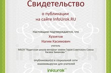 Опубликована методическая разработка учителя истории Хуззятова Н.К. в социальной сети взаимовыручки для учителей "InfoUrok.ru". Web-адрес публикации: infoUrok.ru/material.html?mid=78152. Поздравляем и желаем дальнейших успехов!