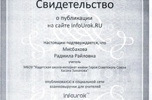 Опубликована методическая разработка учителя математики Мисбаховой Р.Р. в социальной сети взаимовыручки для учителей "InfoUrok.ru". Web-адрес публикации: infoUrok.ru/material.html?mid=64961/ Поздравляем и желаем дальнейших успехов!