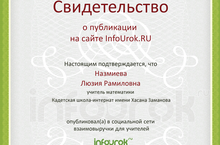 Опубликована методическая разработка учителя математики Назмиевой Л.Р. в социальной сети взаимовыручки для учителей "InfoUrok.ru". Web-адрес публикации: infoUrok.ru/material.html?mid=39516/ Поздравляем и желаем дальнейших успехов!