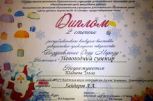 Награждается ученица 7 класса Шагиева Эльза дипломом 2 степени республиканского конкурса-выставки декоративно-прикладного творчества "Поздравление Деду Морозу" в номинации "Новогодний сувенир". Руководитель Хайдаров А.А. Молодец! Поздравляем и желаем дальнейших побед!