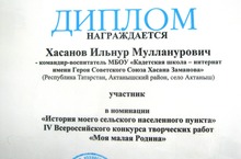 Воспитатель нашей школы Хасанов Ильнур Мулланурович награжден дипломом в номинации "История моего сельского населенного пункта" VI Всероссийского конкурса творческих работ "Моя малая Родина". Поздравляем и желаем дальнейших побед!