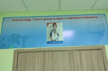 Доска почета спортсменов школы представляет достижения учащихся в спорте. На ней размещаются фото, фамилии и достижения спортсменов.