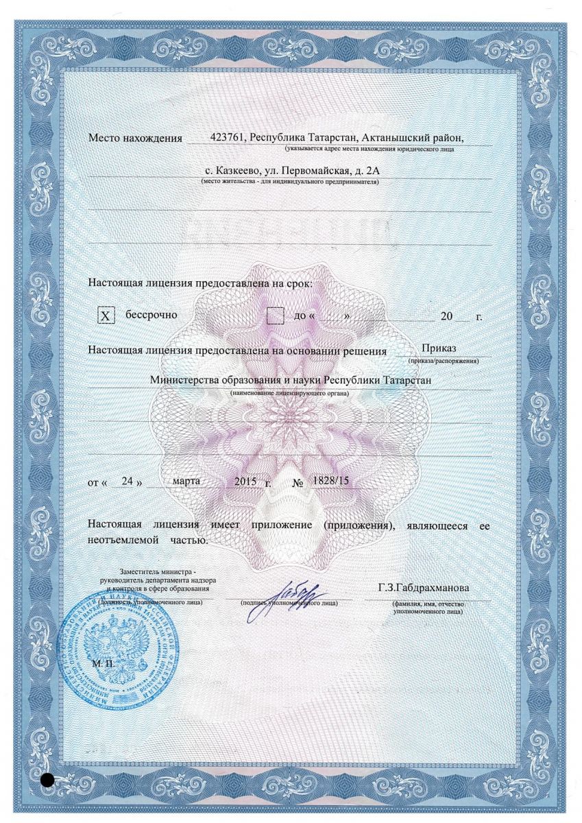 Лицензия школы на право ведения образовательной деятельности