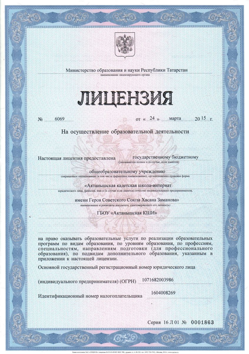 Лицензия школы на осуществление образовательной деятельности