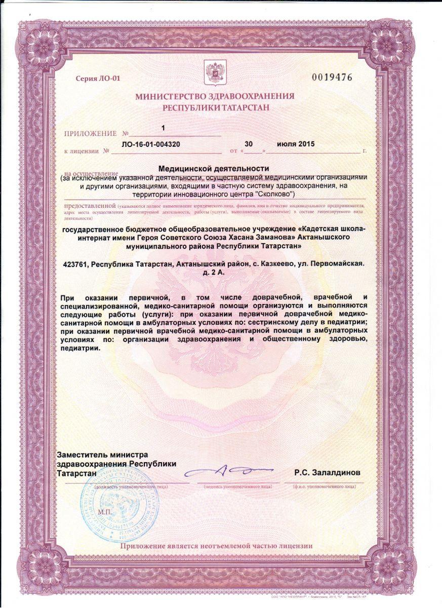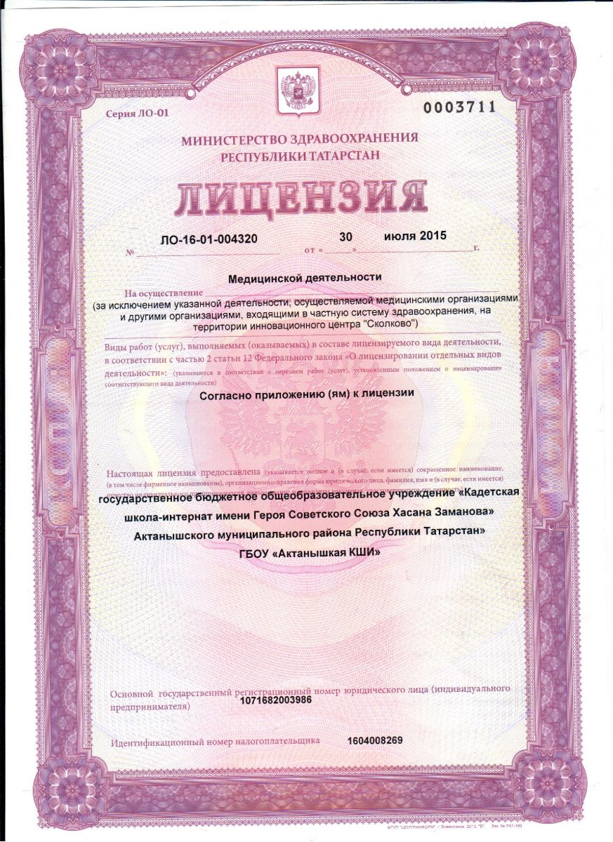 Лицензия школы на осуществление медицинской деятельности