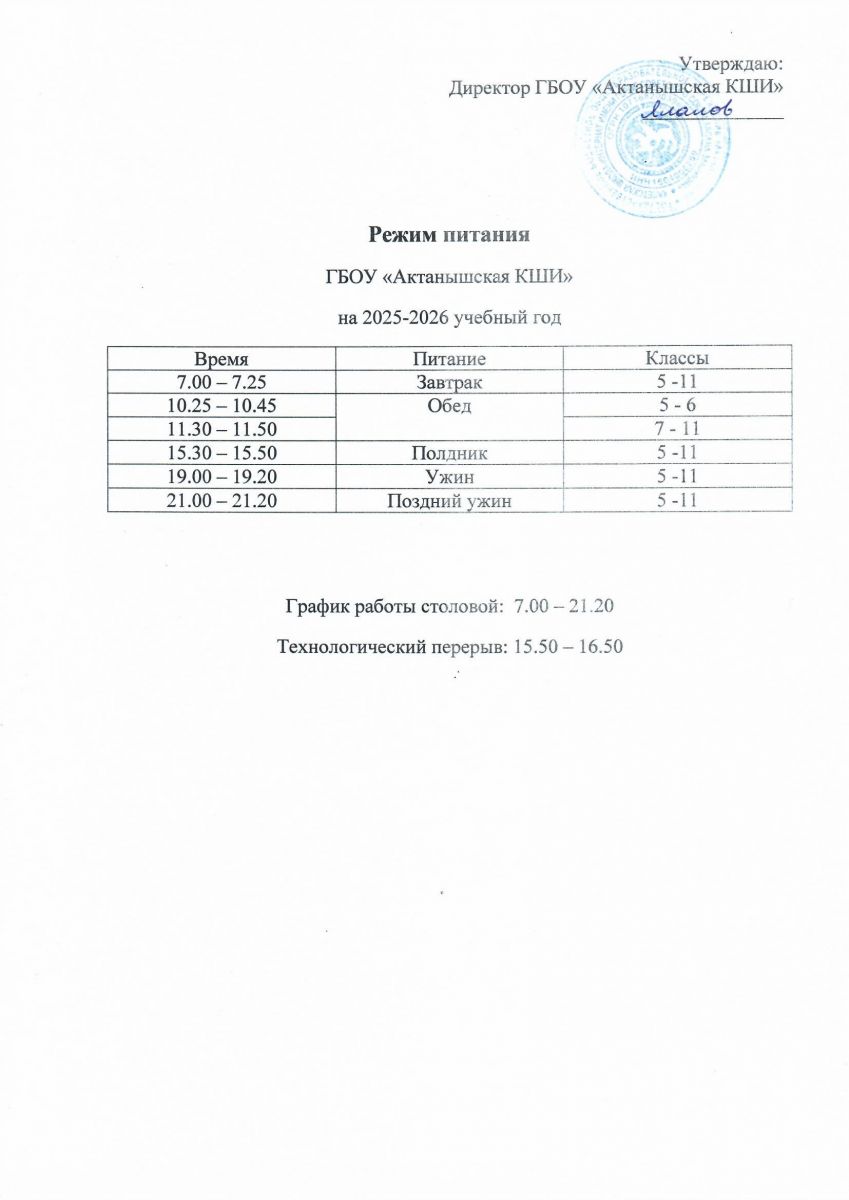 Положение об организации питания обучающихся ГБОУ "Актанышская КШИ"