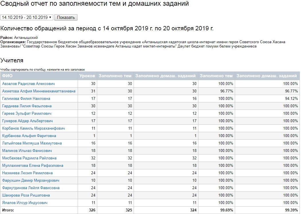 Сводный отчет по заполняемости тем и домашних заданий (14-19.10.2019)