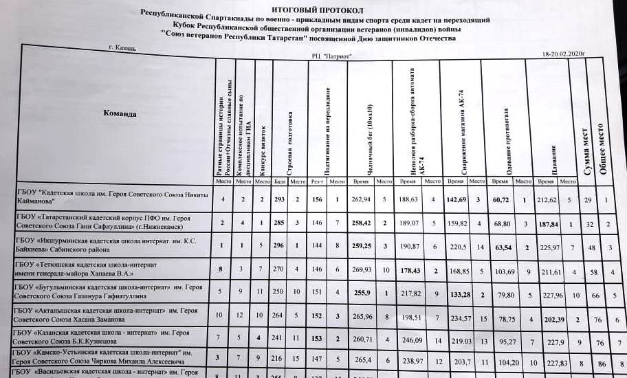 Итоги республиканской спартакиады по военно-прикладным видам спорта среди кадет на переходящий Кубок Республиканской общественной организации ветеранов войны "Союз ветеранов РТ"