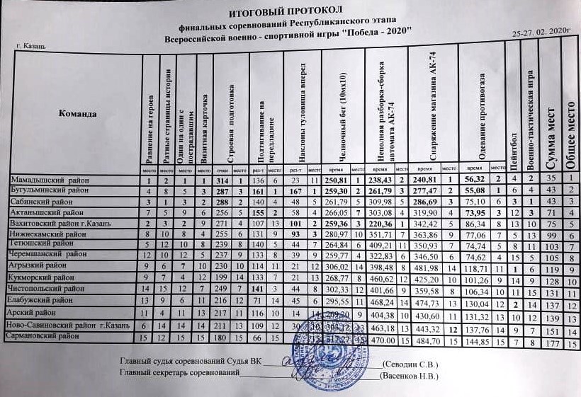Итоги республиканского этапа Всероссийской военно-спортивной игры "Победа"
