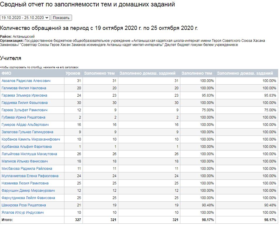 Сводный отчет по заполняемости тем и домашних заданий (19-24.10.2020)