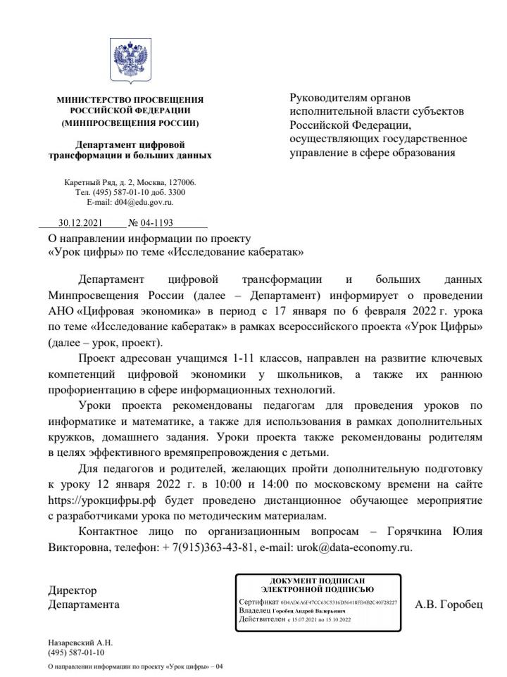 Всероссийское образовательное мероприятие «Урок цифры» по теме «Исследование кабератак»