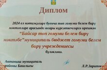 Подведены итоги работы предприятий и организаций по итогам 2024 года-состоялся слет передовиков. Байсарская основная общеобразовательная школа имени Миргалима Гилемовича Басырова и в этом году заняла 1 место среди основных общеобразовательных школ района. Поздравляем коллектив!
