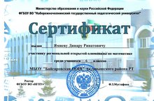 18 ноября в г. Наб Челны состоялась региональная олимпиада по математике для 6 классов. Из нашей школы в олимпиаде участвовал ученик 6 класса Ямиев Д.Р.