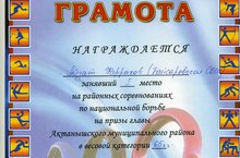 30-31 март көннәрендә Актаныш районы глава призына милли көрәш ярышлары булды. Анда 65 кг. массалы үлчәүдә безнең мәктәп укучысы Фаррахов Айзат 1 урынны алды. Афәрин Айзат!