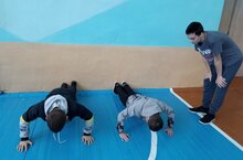 Военно-патриотический месячник продолжается. Каждый день учитель физического воспитания Гульнара Рафиковна готовит ученикам новые испытания. Сегодня состоялись соревнования по подниманию туловища из-под лежа. Кто сильнее?