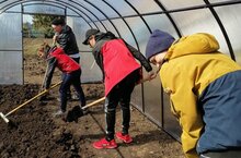 Бакчада язгы эшләр башланды. Быел сатып алып, бакчага урнаштырылган теплицада биология дәресендә укучылар тәҗрибә җирен йомшарталар.