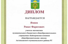Поздравляем! Ямиев Ринат Фаритович - учитель математики и Насирова Гульшат Рафисовна - учитель начальных классов награждаются дипломами участника муниципального этапа республиканского конкурса "Учитель года - 2020".