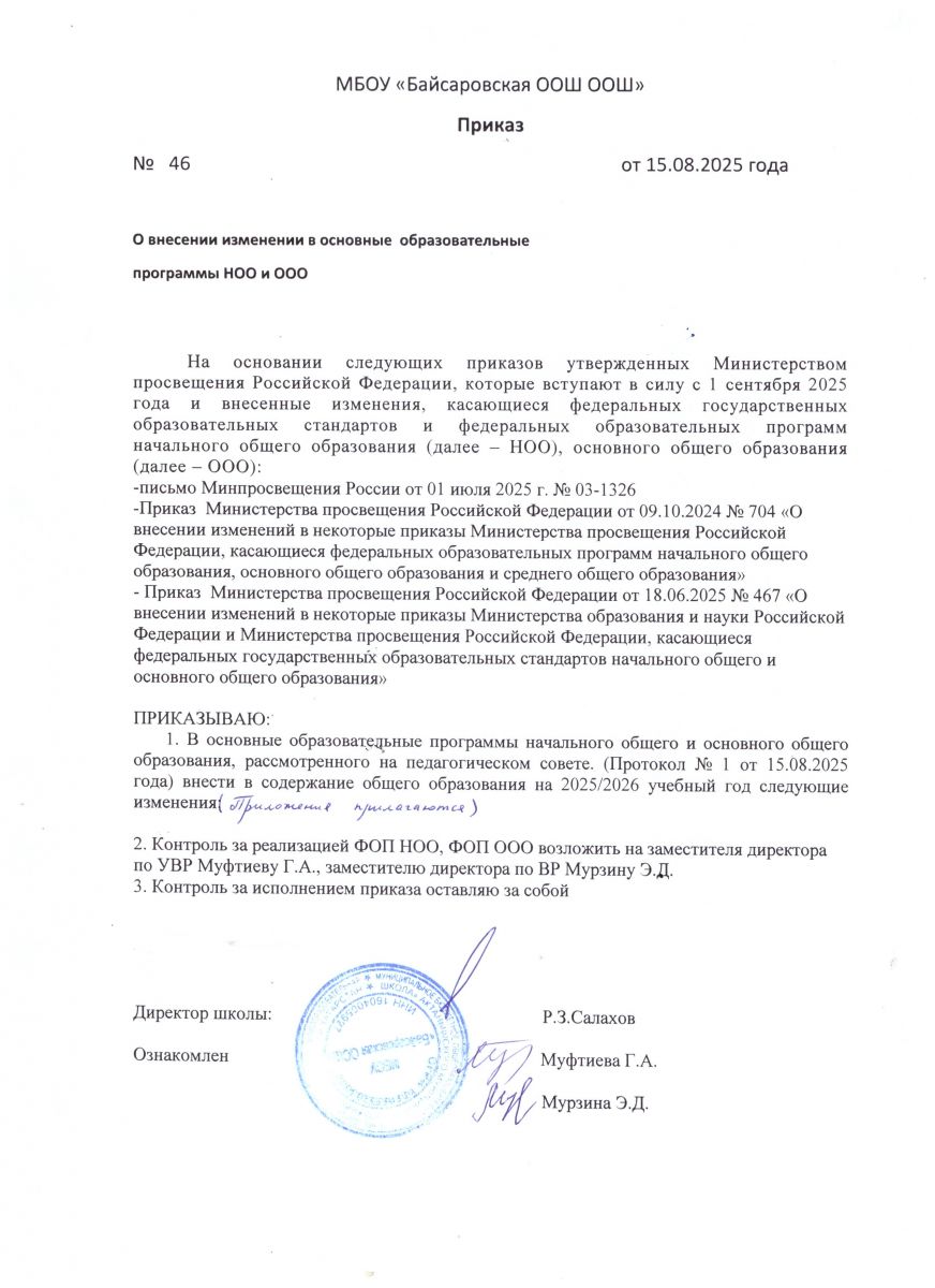 Приказ о внесений изм. в ФОП Приложения к приказу