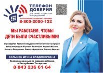 Балалар, яшүсмерләр һәм аларның ата-аналары өчен бердәм гомумроссия ышаныч телефоны 8-800-2000-122.