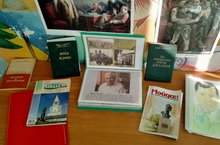В рамках "Года родного языка и единства народов" в честь 115-летия со дня рождения Мусы Джалиля библиотекарь Зарипова Луиза Мирзаханифовна организовала книжную выставку