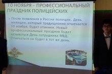 10 ноябрь-полиция хезмәткәрләре көне буларак билгеләп үтелә.Кешеләрнең хокукларын һәм ирекләрен саклауда, террористлар, ришвәтчелеккә каршы көрәшүдә аларның башкарган эшләре бәяләп бетергесез. Укучыларга полиция профессиясенең кирәклеген аңлату өчен, 11 ноябрь көнне, 7 нче класс укучылары белән “ Эчке эшләр министрлыгы яки полиция хезмәткәрләре көне” дип аталган класс сәгате үткәрелде.