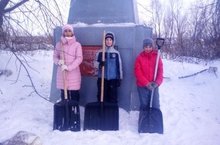 Бөек Ватан сугышында һәлак булган авылдашларыбыз истәлегенә салынган һәйкәлне карап,чистартып тору укучыларга йөкләнгән. 8 нче февраль көнне 5 класс укучылары Илнар абыйлары җитәкчелегендә колхоз идарәсе каршында куелган һәйкәлне кардан чистартып,ачып куйдылар.