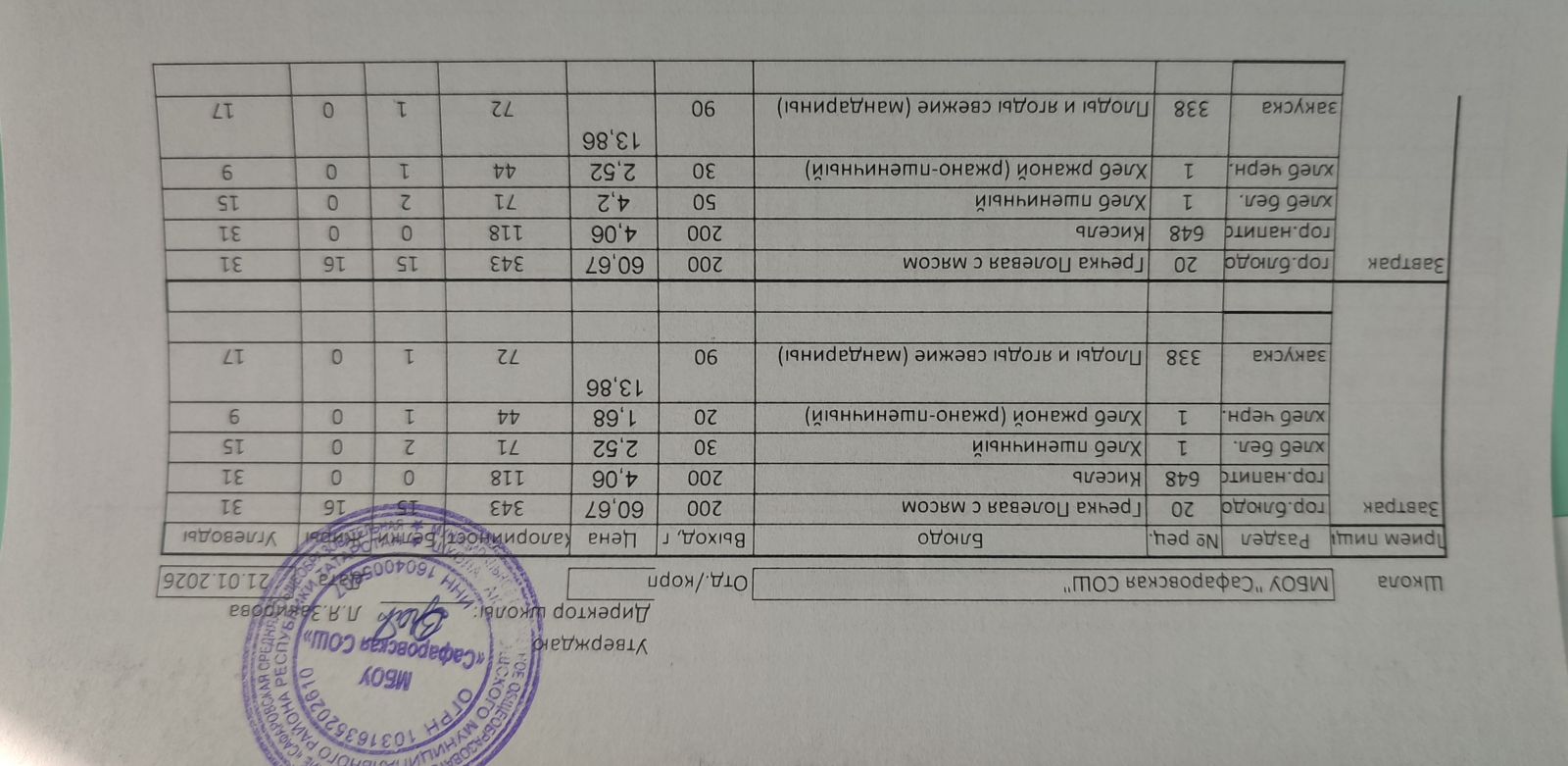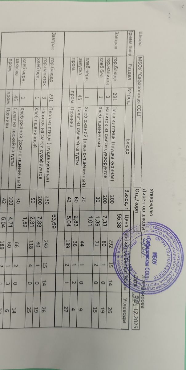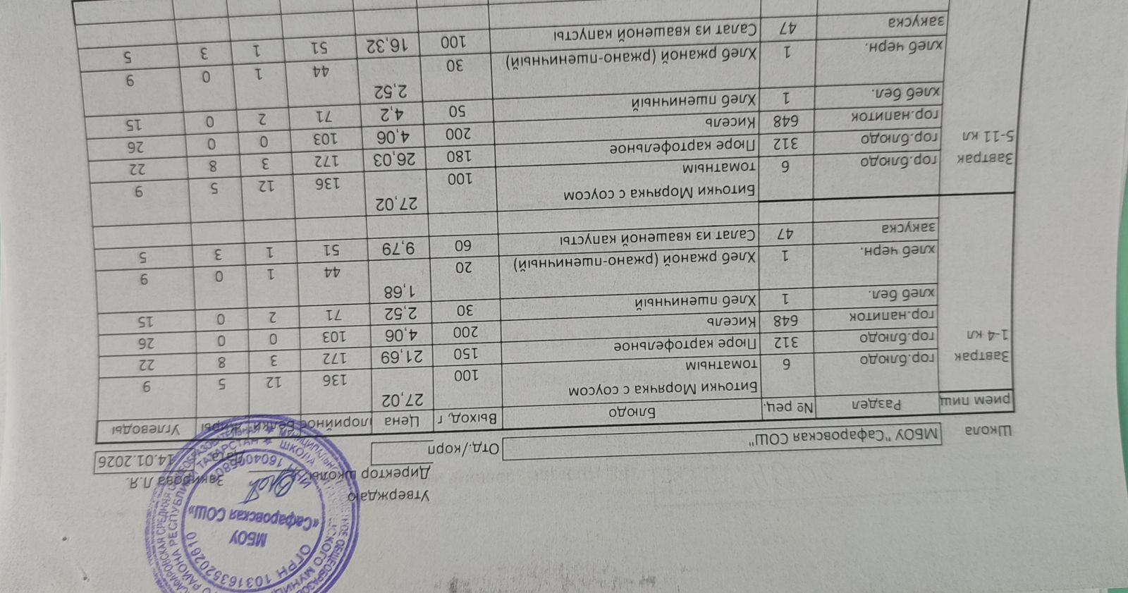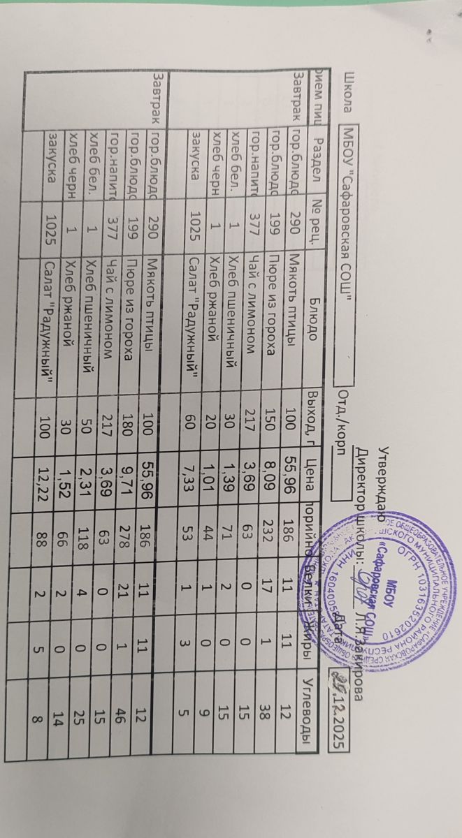 Однодневные меню на 2025-2026 учебный год