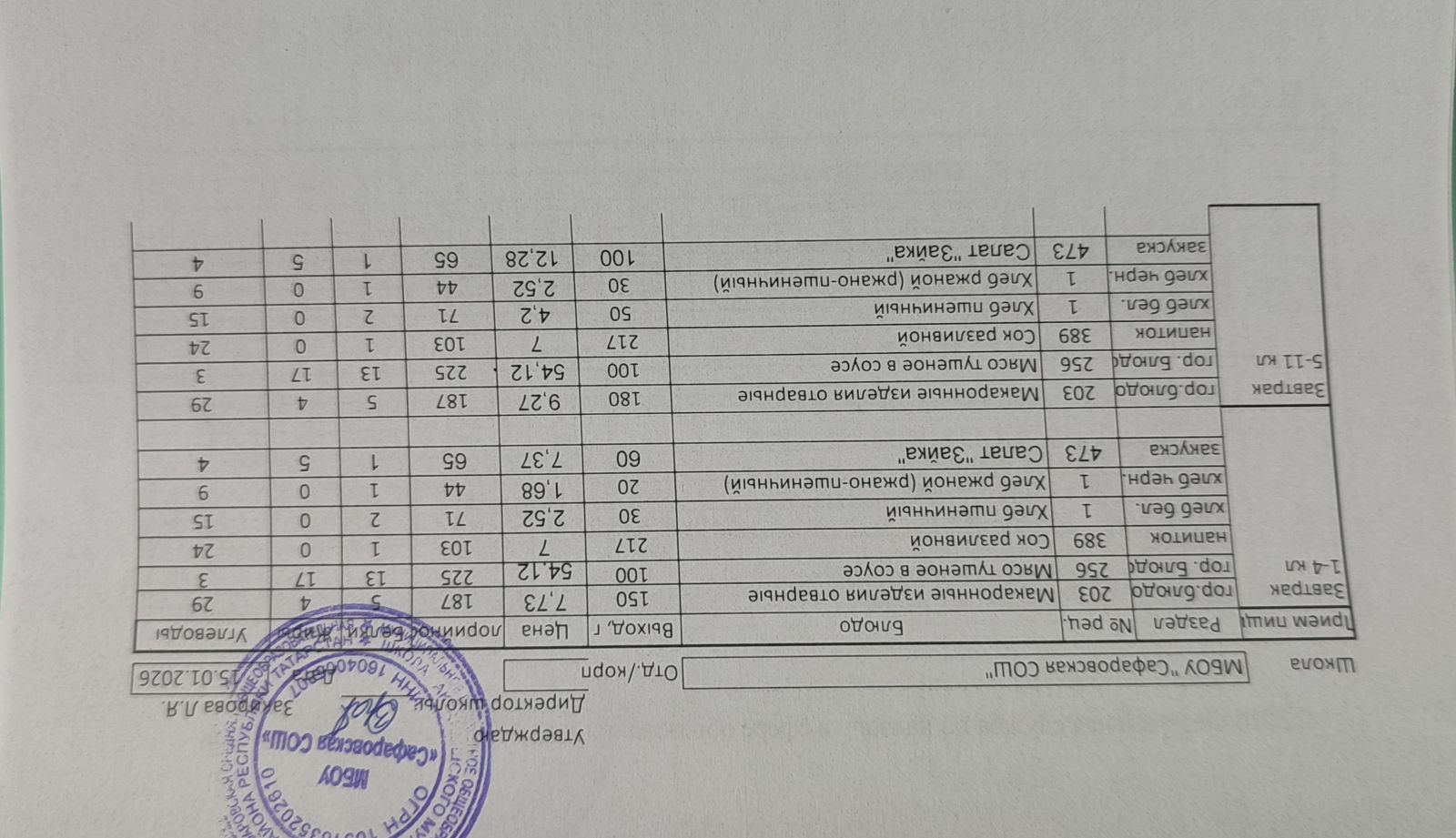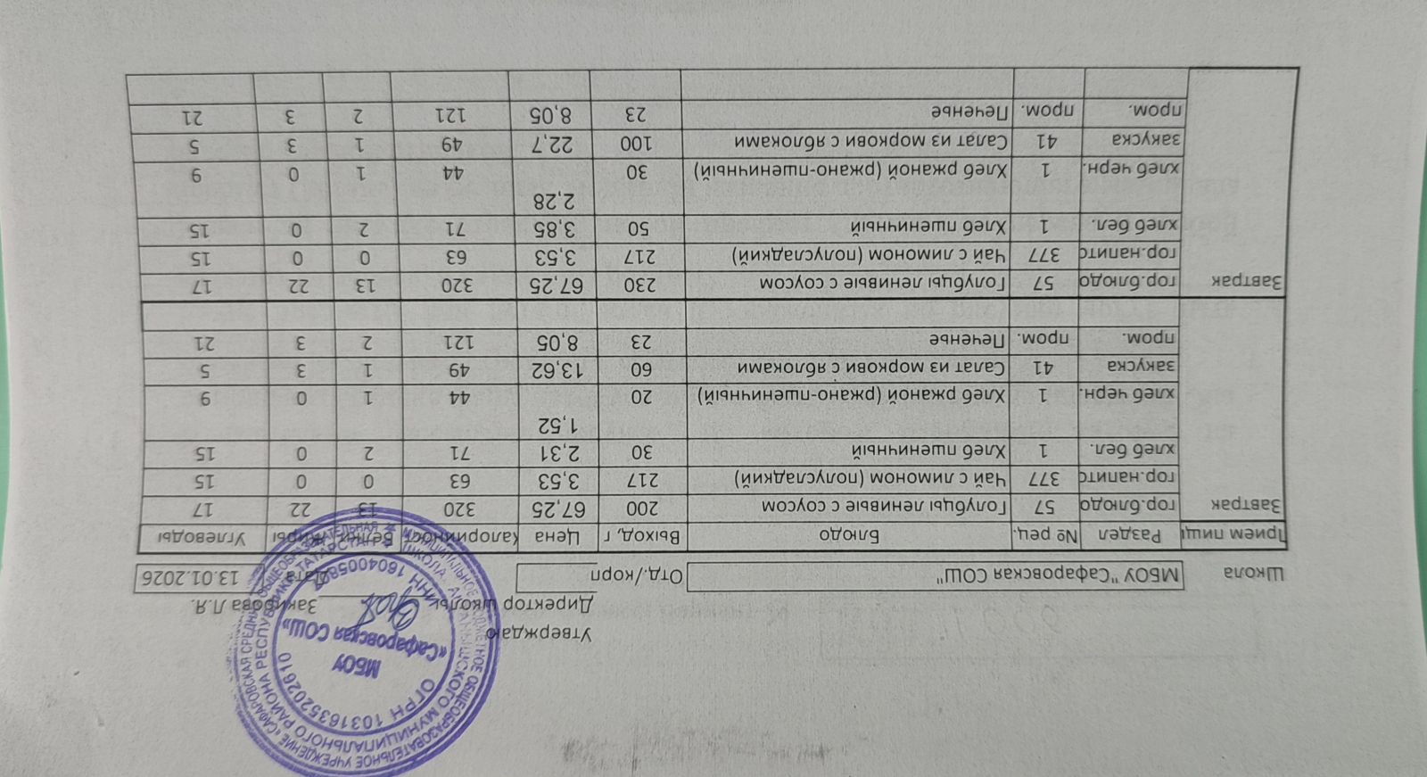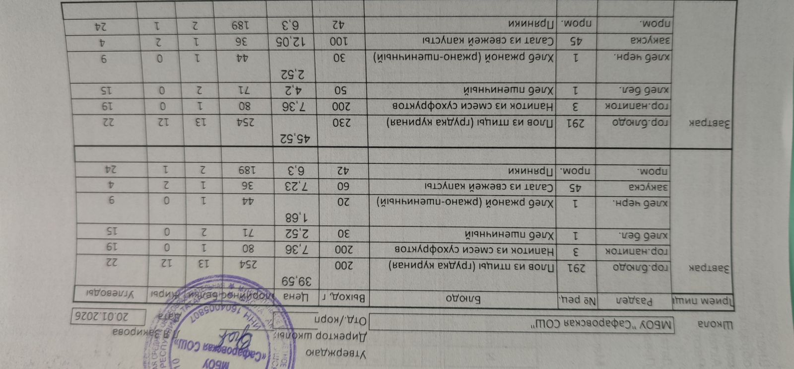 Ежедневное меню \ Көндәлек меню