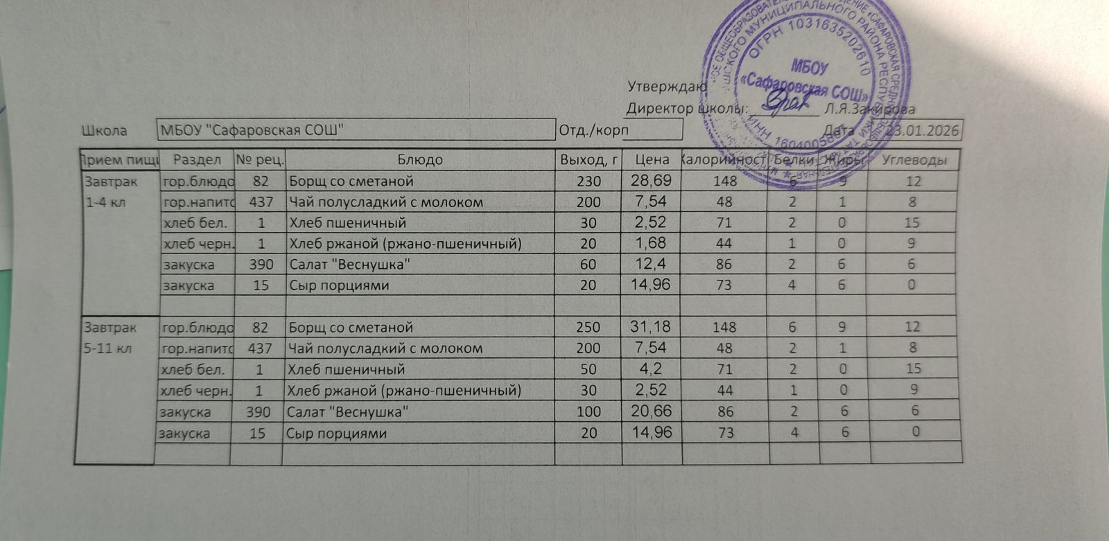 | Короткое название: | МБОУ "Сафаровская СОШ" |