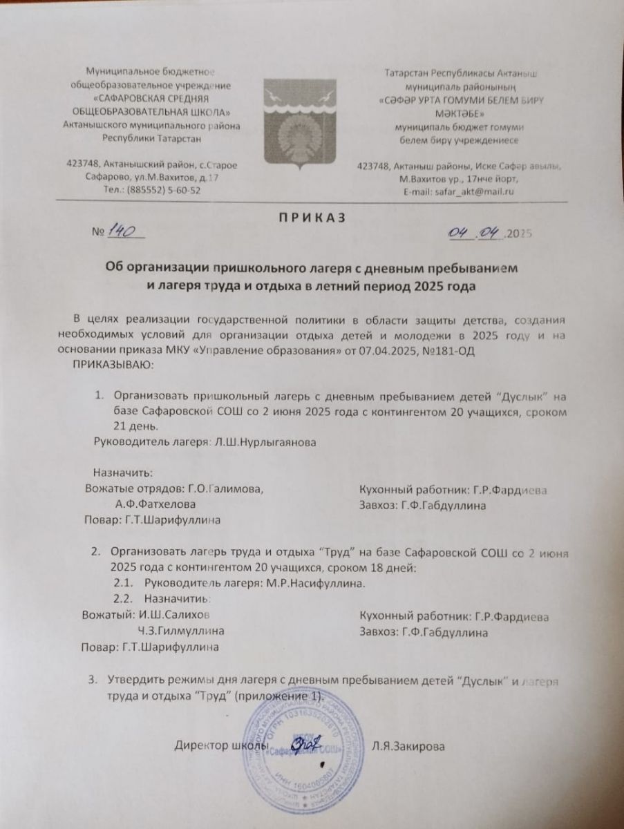Муниципальное бюджетное общеобразовательное учреждение «Сафаровская средняя общеобразовательная школа» Актанышского муниципального района Республики Татарстан/Татарстан Республикасы Актаныш муниципаль районы «Сәфәр урта гомуми белем бирү мәктәбе» гомуми белем муниципаль бюджет учреждениесе