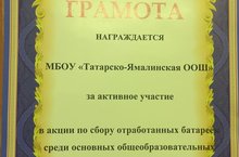 Кулланылган батарейкалар җыю акциясенең район этабында мәктәбебез актив катнашкан өчен грамота белән бүләкләнде. Акциянең икенче этабы март аенда йомгаклана.